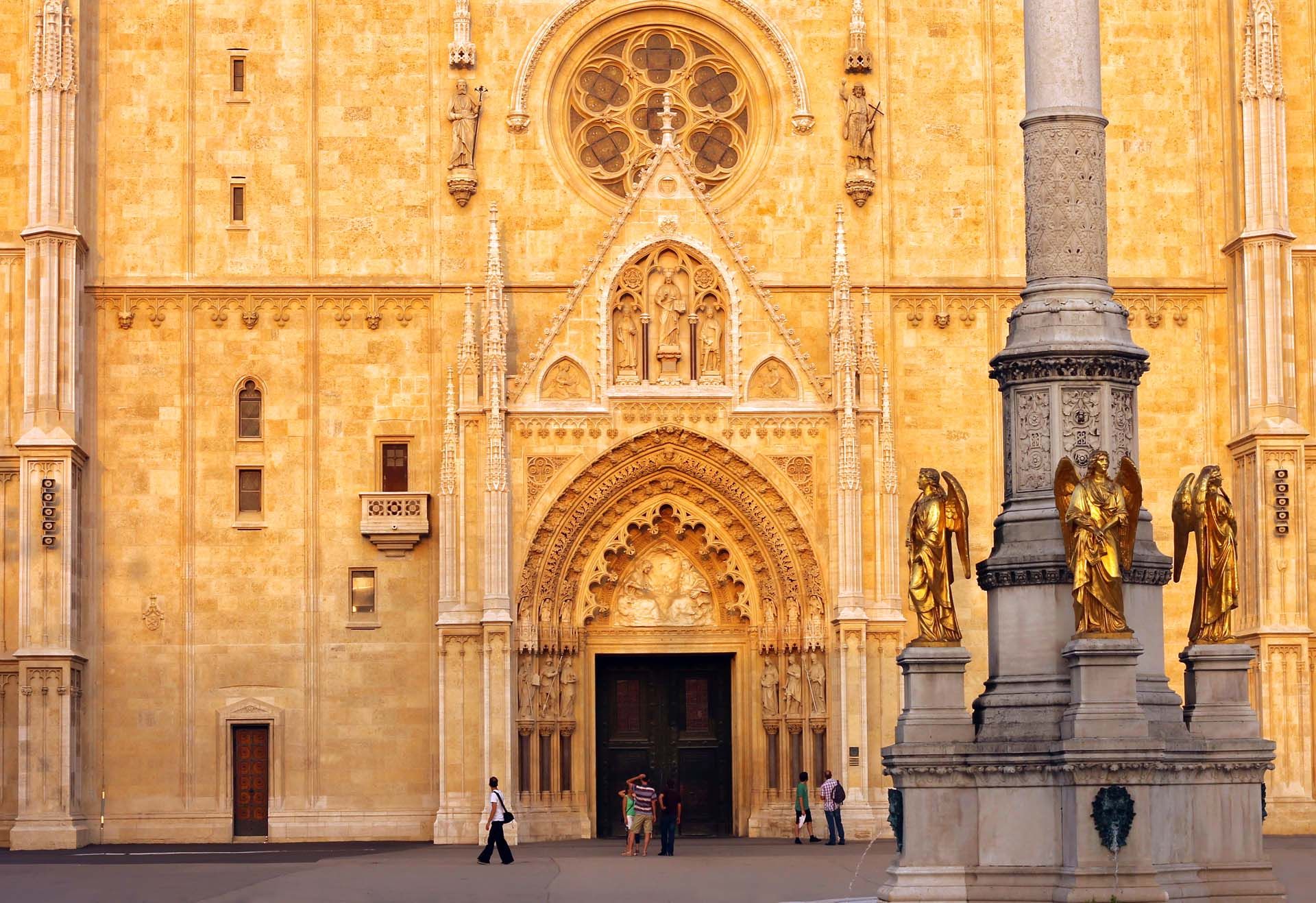 Estátuas de anjos guardam a catedral de Zagreb, Croácia