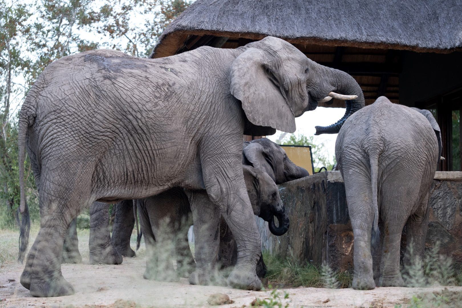 Elefantes em uma piscina na Reserva de Caça Sabi Sand – uma das melhores opções para um safári na África do Sul © Shutterstock