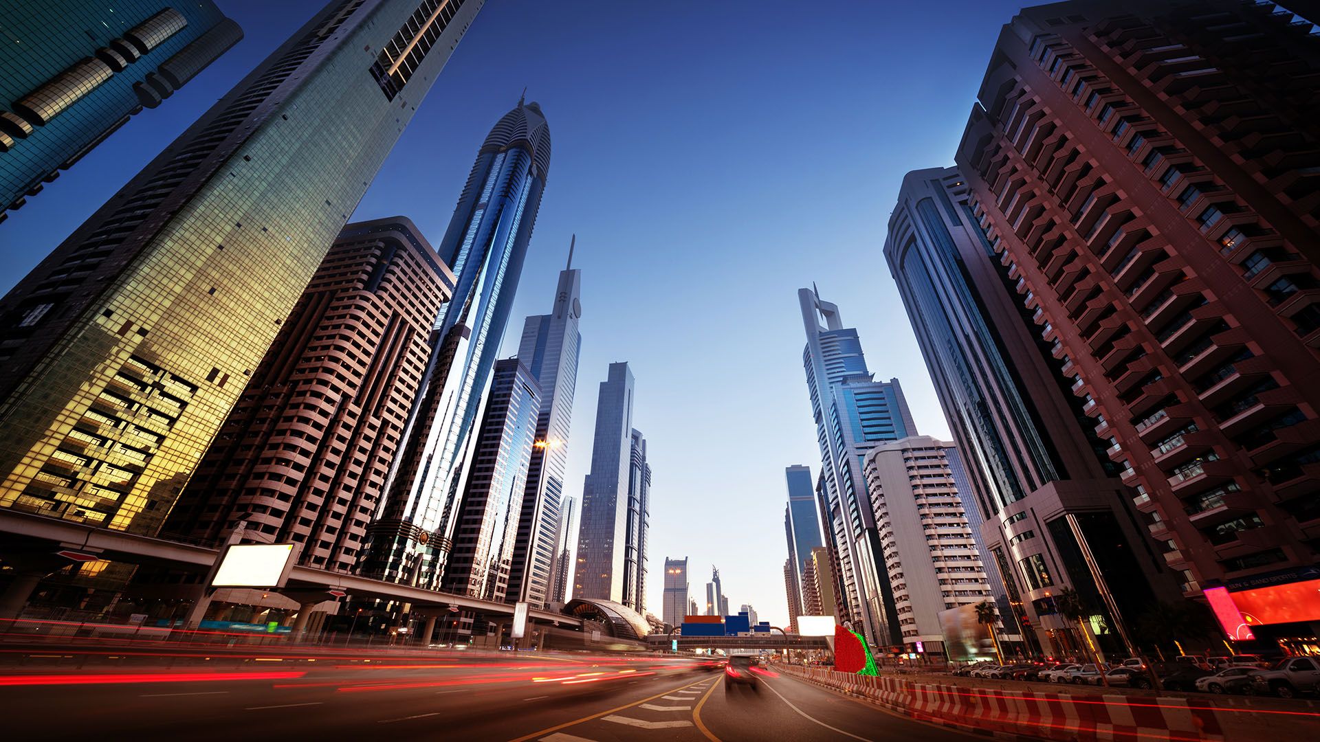 Sheikh Zayed Road ao pôr do sol, Dubai, Emirados Árabes Unidos | © Iakov Kalinin / Shutterstock