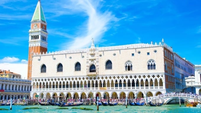 O Palácio Ducal, adjacente à Praça de São Marcos, foi construído no século VIII como residência do governador e gabinete do governo da República, e mais tarde foi renovado para a sua forma atual no século XV, após um incêndio. O exterior, com a sua série de arcos góticos, é decorado com intrincados ornamentos de influência da arquitetura islâmica, conferindo-lhe um toque exótico.