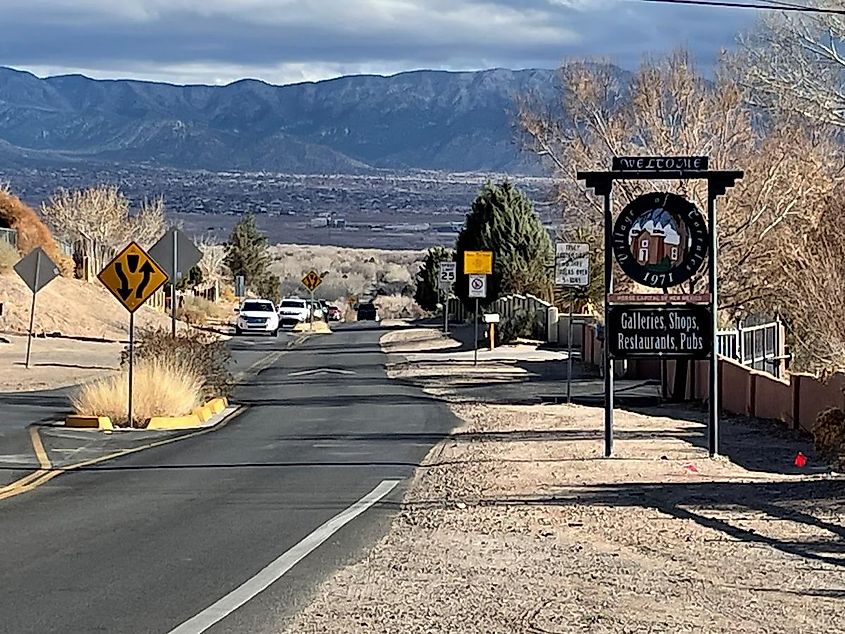 Vista da rua em Corrales, Novo México, por meio da visão geral das atividades da vila de Corrales (corrales-nm.org)