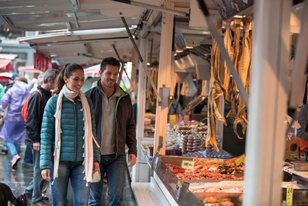 Para alguns dos frutos do mar mais frescos da Noruega, vá ao famoso Mercado de Peixe de Bergen. Está localizado no porto há séculos, com um mercado coberto, o Mathallen, inaugurado em 2012 e que fica aberto o ano todo. O mercado ao ar livre abre em 1º de maio para a temporada de verão.