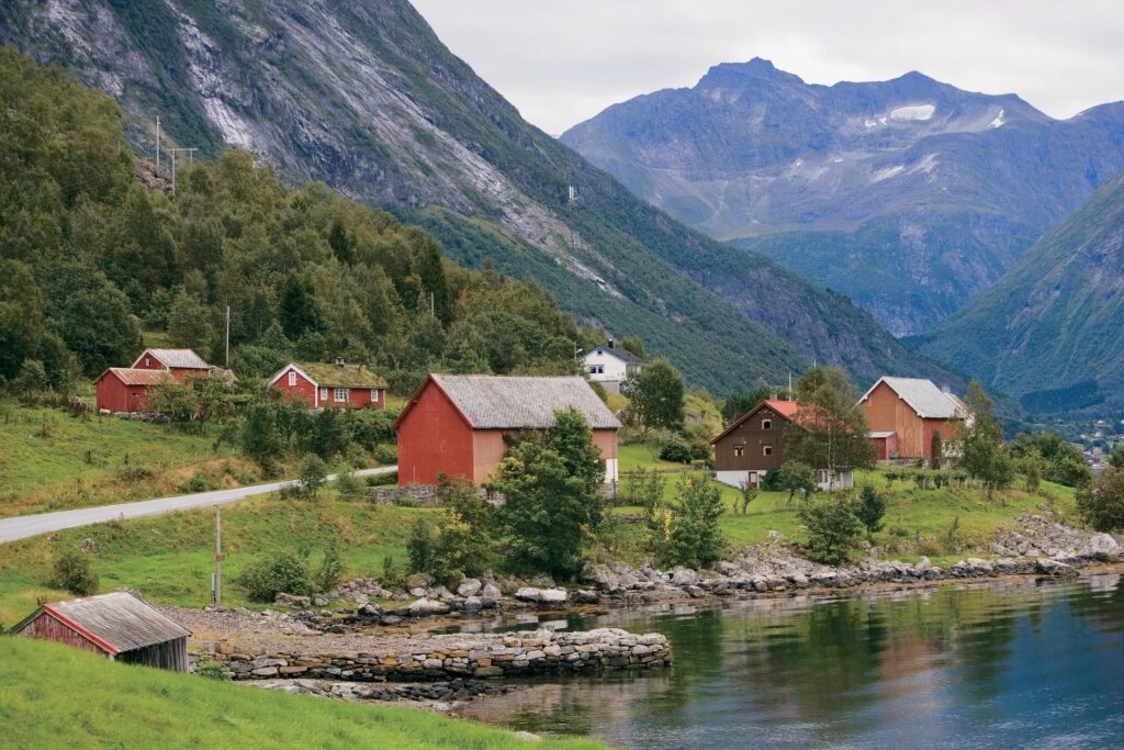 No final do fiorde de Geiranger, classificado pela UNESCO, Geiranger é outra vila cativante cercada por montanhas altas de ambos os lados. Você encontrará uma pequena galeria à beira-mar e um conjunto de lojas de souvenirs e restaurantes aqui.