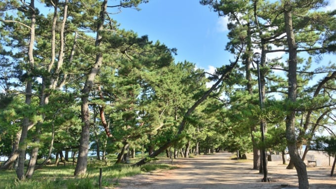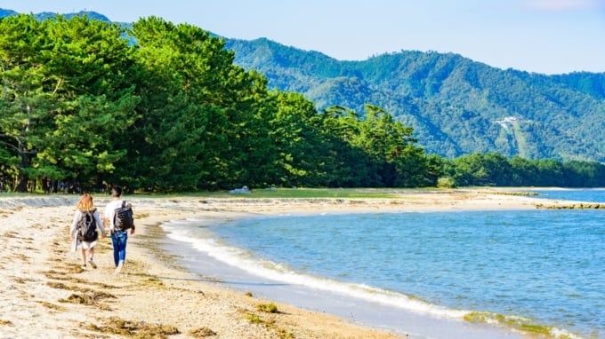 Sendo uma das três vistas mais pitorescas do Japão, Amanohashidate é um parque nacional conhecido por sua bela areia branca e pinheiros verdes. Também foi designado como Local Especial de Beleza Cênica pelo governo japonês. Você pode pensar que não consegue entrar facilmente em um site tão especial, mas na verdade consegue! Embora pareça estreita, a parte mais larga tem cerca de 170 metros de diâmetro. Caminhar em um sentido leva cerca de 50 minutos e andar de bicicleta leva cerca de 20 minutos. Carros geralmente não são permitidos.
