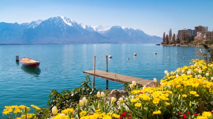 No sopé dos dramáticos Alpes Suíços, o Lago Genebra é uma vasta massa de água que atravessa a fronteira da Suíça e da França. Devido ao seu tamanho, há muitas coisas para fazer ao redor do lago, como esportes aquáticos, ciclismo ou caminhadas, além de uma variedade de pontos turísticos e atividades na cidade de Genebra, que fica no lado sul. A área também é muito popular pelos seus spas, alguns dos quais são frequentemente visitados por atores e celebridades famosos.