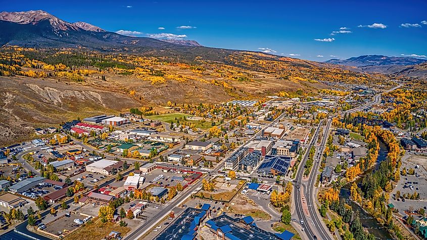 Vista aérea de Silverthorne, Colorado durante o outono.