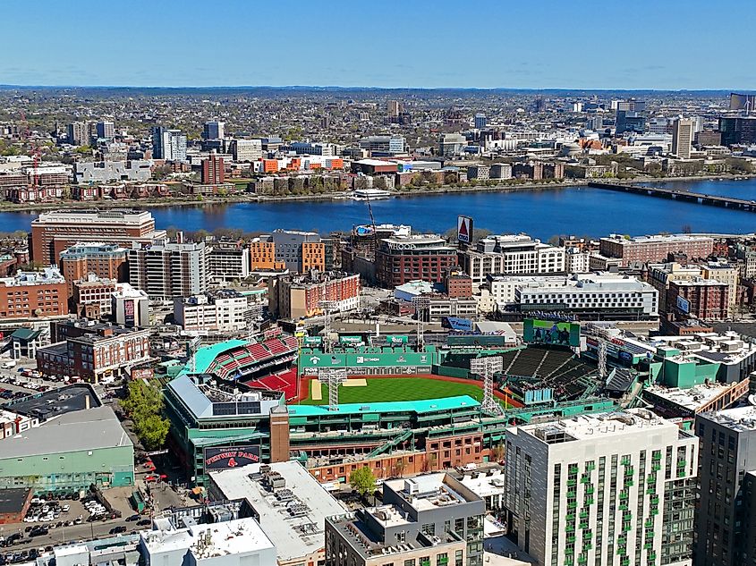 Vista aérea do Fenway Park, no bairro de Fenway, em Boston, Massachusetts. Crédito editorial: Wangkun Jia/Shutterstock.com