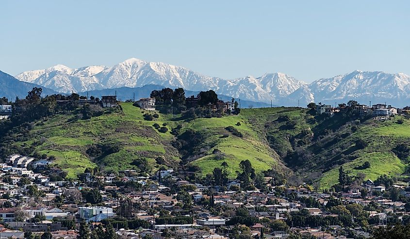 Bairro de Los Angeles Mt Washington com picos das montanhas de San Gabriel.