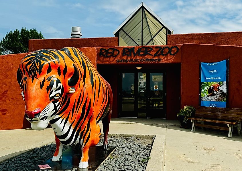 A entrada do Red River Zoo, Fargo, Dakota do Norte. Crédito da imagem JTTucker via Shutterstock