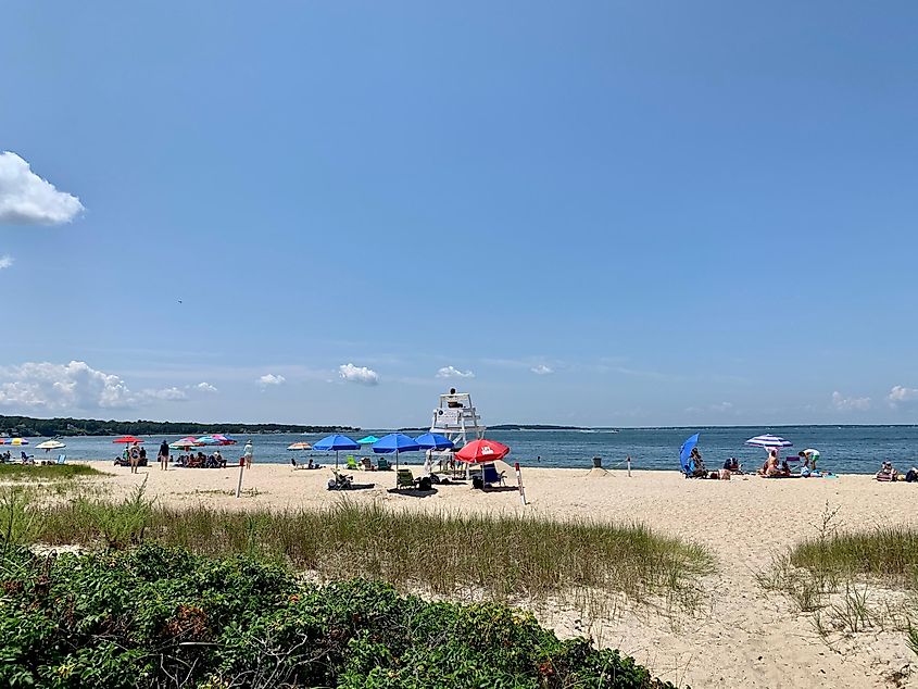 Frequentadores da praia em Foster Memorial Beach em Sag Harbor, via Jaclyn Vernace / Shutterstock.com