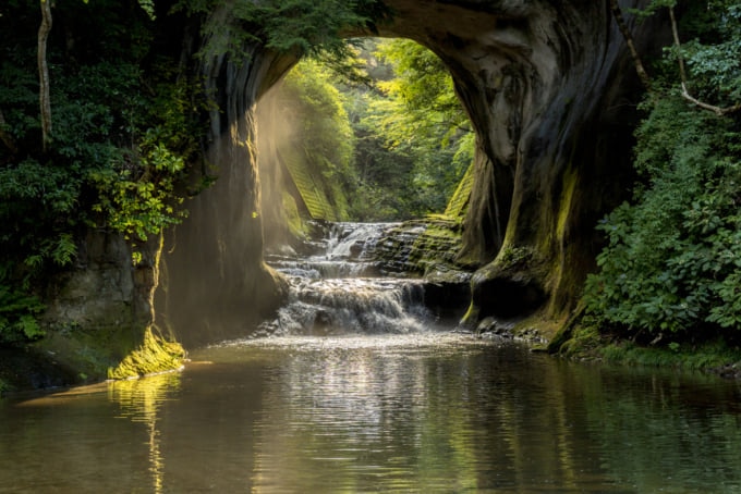Outro local natural altamente subestimado de Chiba, a Cachoeira Nomizo é o local perfeito para fotógrafos que desejam tirar uma foto do ambiente natural do Japão. Localizada no deserto ao sul da Península de Boso, a cachoeira é particularmente bela nas primeiras horas da manhã, quando o sol brilha através da caverna dando-lhe um brilho etéreo.