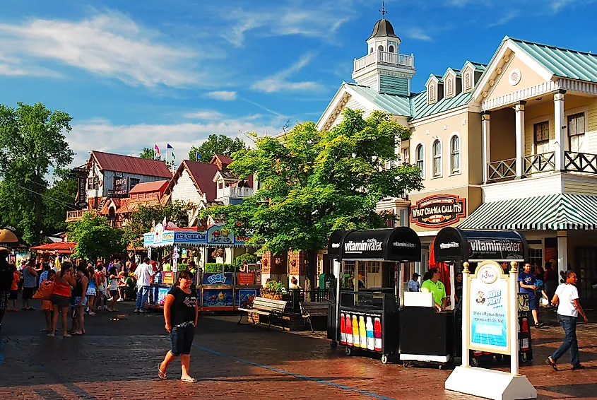 Uma multidão se reúne em uma vila recriada da Nova Inglaterra em Agawam, Massachusetts. Crédito editorial: James Kirkikis/Shutterstock.com