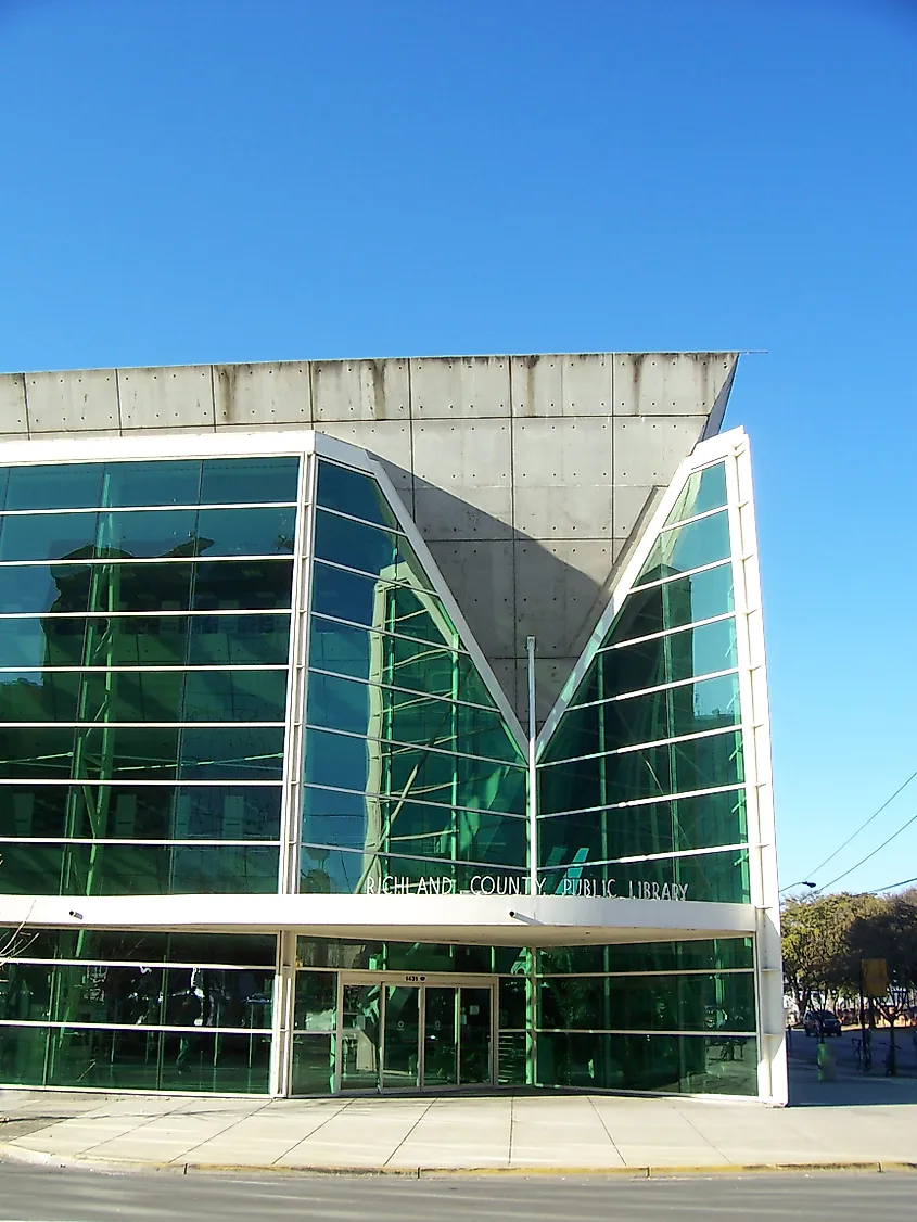 Entrada frontal da Biblioteca Principal da Biblioteca Pública do Condado de Richland em Columbia, SC.