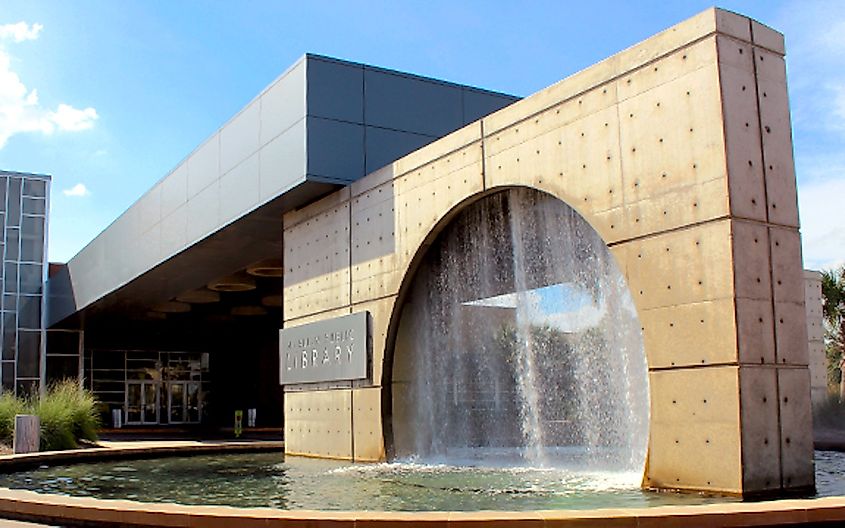 Biblioteca Pública McAllen em McAllen, Texas. Crédito da imagem: Mplfan via Wikimedia Commons.