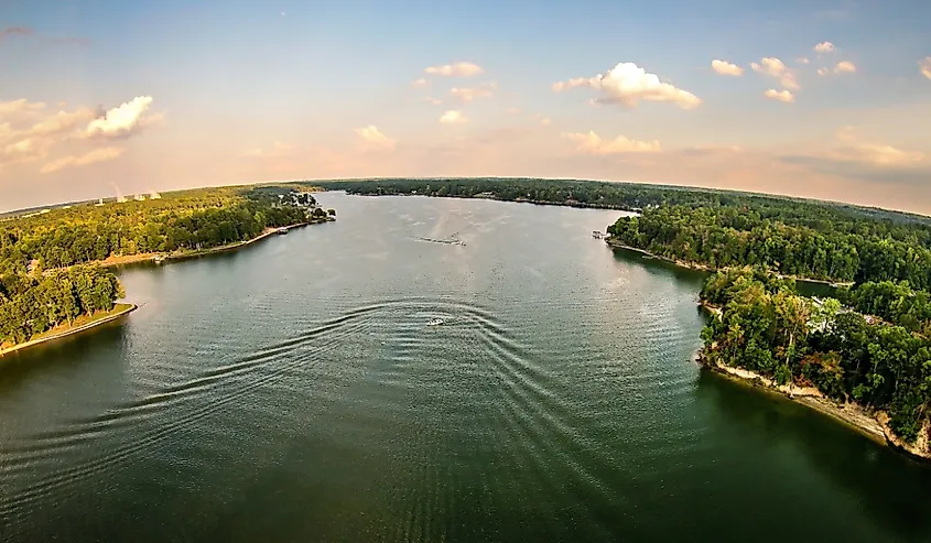 Localizado bem no coração da Carolina do Sul, este reservatório de 48.000 acres foi construído na década de 1920 para produção hidrelétrica. É um refúgio vibrante para recreação aquática, famoso por suas populações de largemouth e robalo. Os visitantes do Lago Murray desfrutam de tudo, desde passeios de barco e natação até piqueniques. Além de sua beleza cênica, atrai turistas com um impressionante mix de comodidades, como marinas, parques, restaurantes e muito mais. Os 650 milhas de costa do Lago Murray são um playground para numerosos animais selvagens, incluindo crocodilos e cobras.