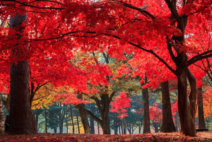 Esta bela ilhota fluvial ganhou fama ao aparecer em um dos dramas mais queridos do país, 'Winter Sonata', e é fácil entender por que a ilha foi usada como pano de fundo para a produção. Embora Nami seja deslumbrante o ano todo, é no outono que ela realmente brilha, quando suas árvores mudam para tons de quase todas as cores do arco-íris. Embora pegar um barco seja o meio de transporte usual aqui, se você quiser realmente chegar com estilo, você pode pegar uma tirolesa enquanto voa pelo ar em direção à ilha.