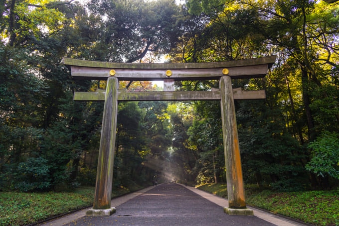 Este impressionante santuário, fundado em 1920 e localizado dentro de uma seção florestal do Parque Yoyogi, abriga os espíritos do Imperador Meiji e da Imperatriz Shoken. Os terrenos são extremamente espaçosos e tranquilos, e a caminhada pela floresta madura, sobre riachos e passando pelo jardim de íris bem cuidado do santuário, é um deleite surpreendente, já que logo além do recinto fica a movimentada Estação Harajuku e as movimentadas ruas comerciais ao redor de Omotesando.