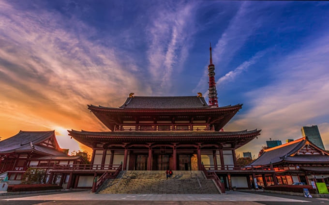 É quase impossível olhar para o salão principal de Zojoji e não notar a icônica Torre de Tóquio aparecendo ao fundo – os dois vêm como um par. Localizado dentro do Parque Shiba, não muito longe das animadas áreas de Roppongi e Ginza, Zojoji também é conhecido como o local de descanso final da família Tokugawa, membros poderosos do shogunato que já governou o Japão.