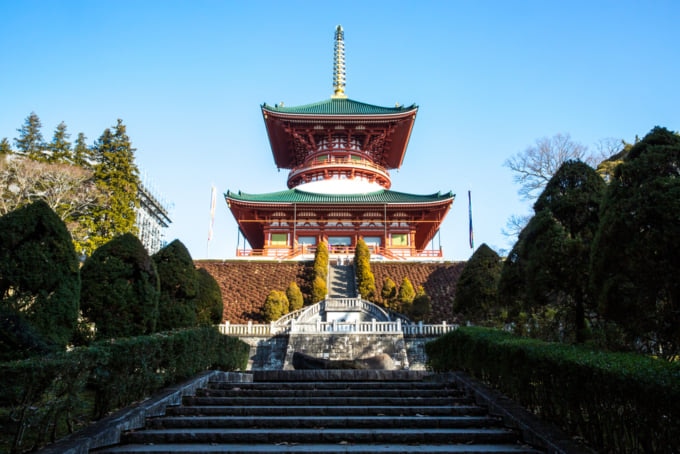 Naritasan Shinshoji é um complexo de templos extremamente espaçoso e impressionante, não muito longe do Aeroporto Internacional de Narita, e vale a pena sair da cidade algumas horas antes para ver. A história do templo remonta a mais de mil anos e hoje é o templo budista mais visitado do Japão. O icônico pagode de três andares do templo é cercado por belos jardins e paisagens verdes.