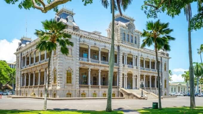 O Palácio Iolani é o único palácio real dos Estados Unidos. Construído em 1882 pelo rei Kalākaua, este palácio era um dos mais avançados da época, custando US$ 360.000 para ser construído. Na verdade, já tinha iluminação elétrica antes mesmo do Palácio de Buckingham, no Reino Unido, mostrando seu design luxuoso.
