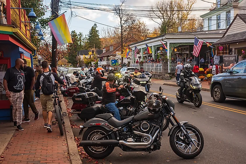 Motociclistas na Main Street, New Hope, Pensilvânia. Crédito editorial: JWCohen/Shutterstock.com