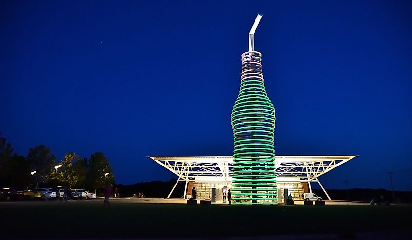 Dirija pela histórica rota 66 através de Arcadia, Oklahoma, e você não pode perder a garrafa de refrigerante neon de 20 metros de altura na frente do POPS.