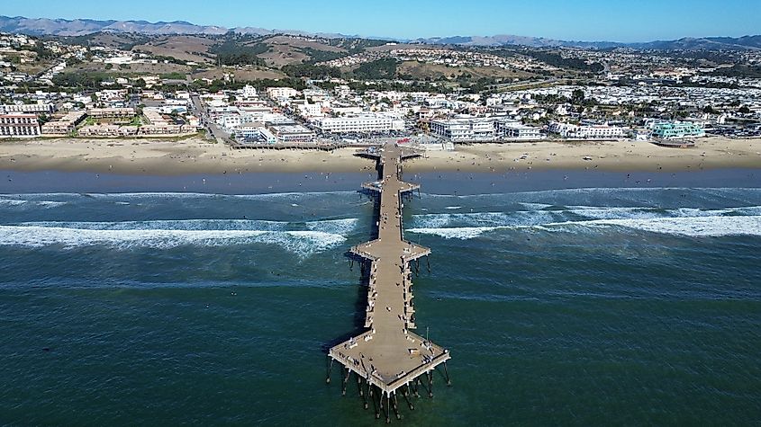 Vista aérea do cais de Pismo Beach, Califórnia, EUA.