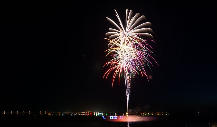Fogos de artifício sobre a baía, Ilha South Padre.