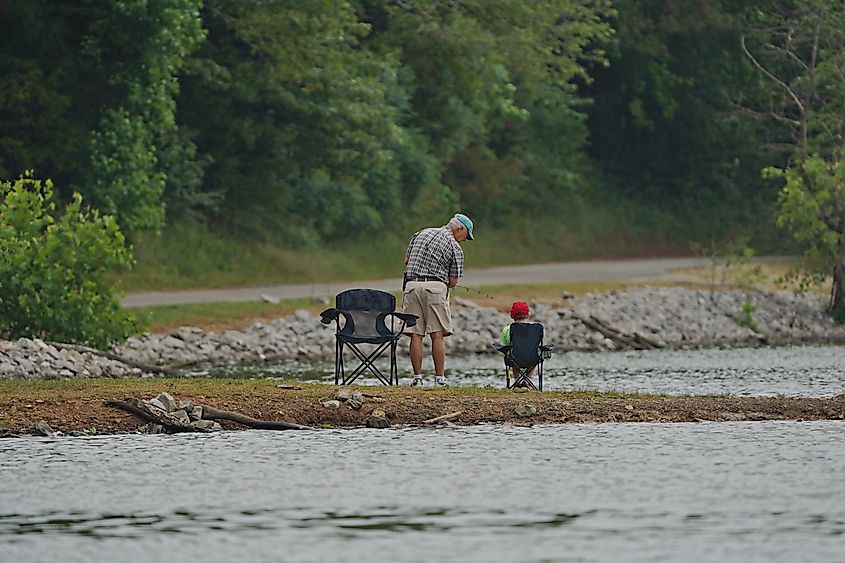 Pescando no Lago Madison County em Huntsville, Alabama. Crédito editorial: Katssoup/Shutterstock.com.