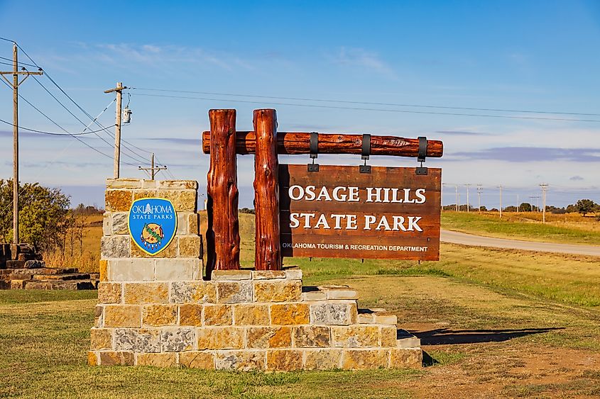 Sinal do Parque Estadual Osage Hills em Oklahoma.