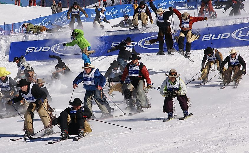 Uma competição de esqui cowboy em Steamboat Springs, Colorado. Crédito editorial: Steve Estvanik/Shutterstock.com.