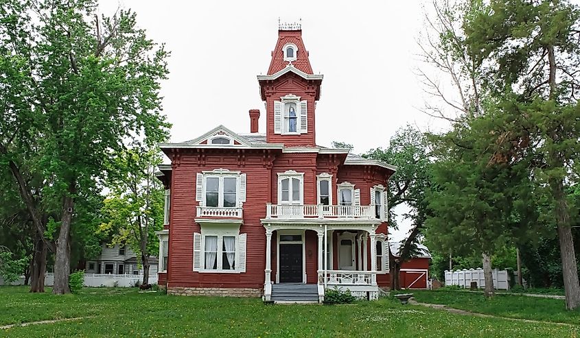 Mansão histórica vermelha em Abilene, Kansas. Crédito da imagem Sabrina Janelle Gordon via Shutterstock