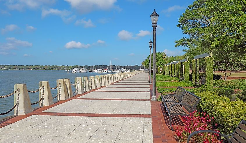 O Henry C. Chambers Waterfront Park fica no bairro histórico do centro de Beaufort. Crédito da imagem Stephen B. Goodwin via Shutterstock.