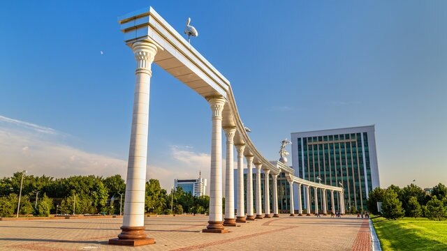 Localizada no centro de Tashkent, a Praça da Independência serve como um importante marco cercado por edifícios governamentais e parlamentares. É também um ponto de encontro popular para os habitantes locais que procuram relaxar e desfrutar do espaço aberto.
