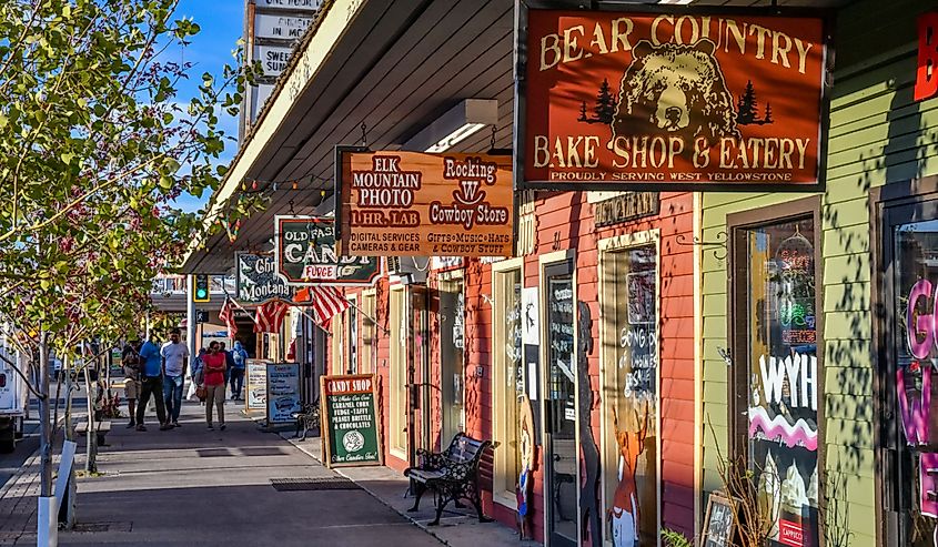 Empresas locais em West Yellowstone, Montana. Crédito editorial: GagliardiPhotography / Shutterstock.com