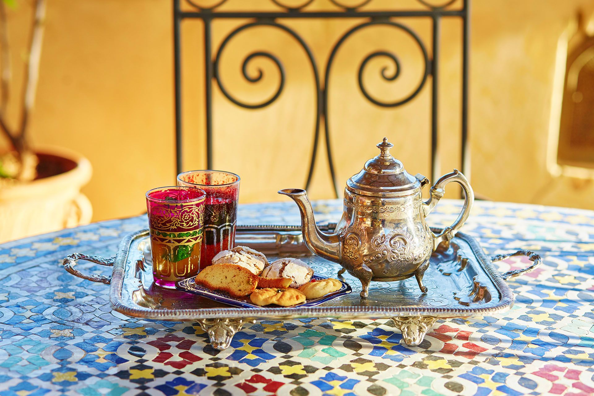 Chá de menta marroquino e doces em uma travessa @ Shutterstock