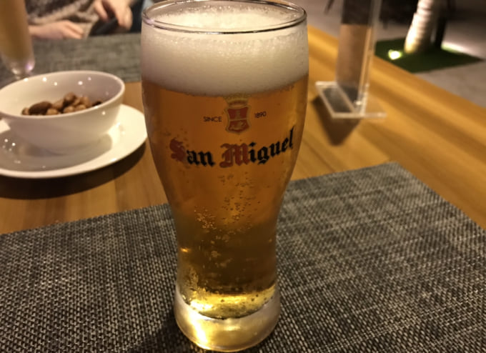 Para terminar a última noite em Cebu, não deixe de jantar no hotel. A piscina iluminada e o hotel eram lindos. Felicidades com cerveja filipina!