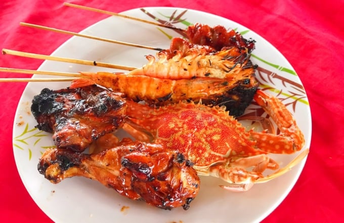 Ao chegar na ilha, você pode almoçar primeiro. O cardápio era “churrasco estilo filipino”. Nas Filipinas, ingredientes como frango, porco e camarão são espetados e grelhados.
