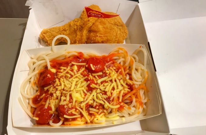 O sabor era ligeiramente doce e delicioso. A fonte da doçura é um molho filipino exclusivo chamado “ketchup de banana”.