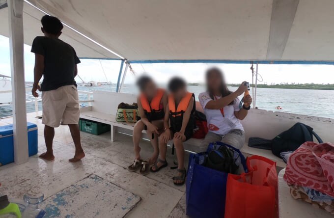 Um guia que também falasse inglês ou filipino iria buscá-lo na entrada do hotel, portanto o transporte para o porto era conveniente. Ao chegar ao porto, você pode embarcar em um pequeno barco. Se você tem tendência a enjoar, tome remédio para enjoo antes de esquecer.
