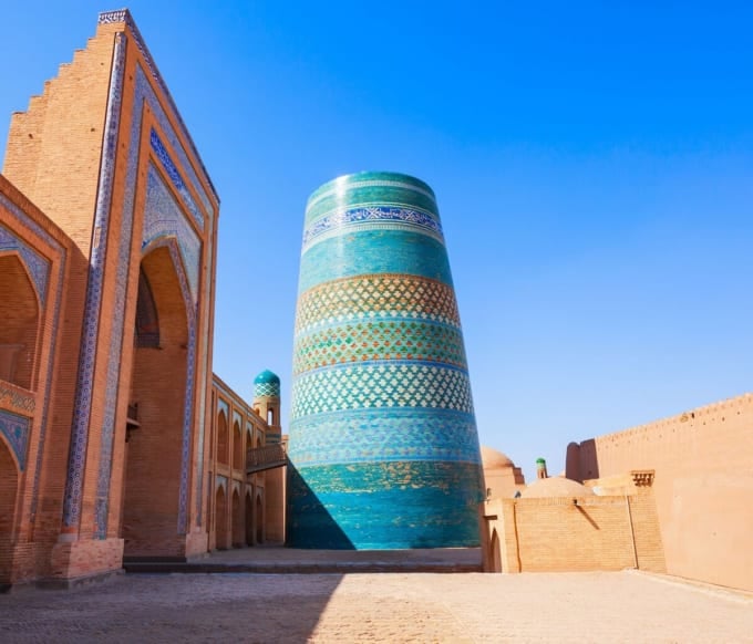 O Kalta Minor é o marco mais icônico de Itchan Kala. Ao entrar pelo Portão Oeste, o minarete atarracado e de azulejos azuis vívidos ergue-se imediatamente à sua direita.