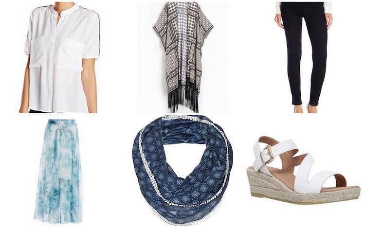 Leve jeans e calças justas que não estejam rasgadas, camisas e tops, maxi vestidos e saias e peças que você possa misturar e combinar para criar looks diferentes. Leve um lenço para complementar suas roupas ou para cobrir quando necessário.