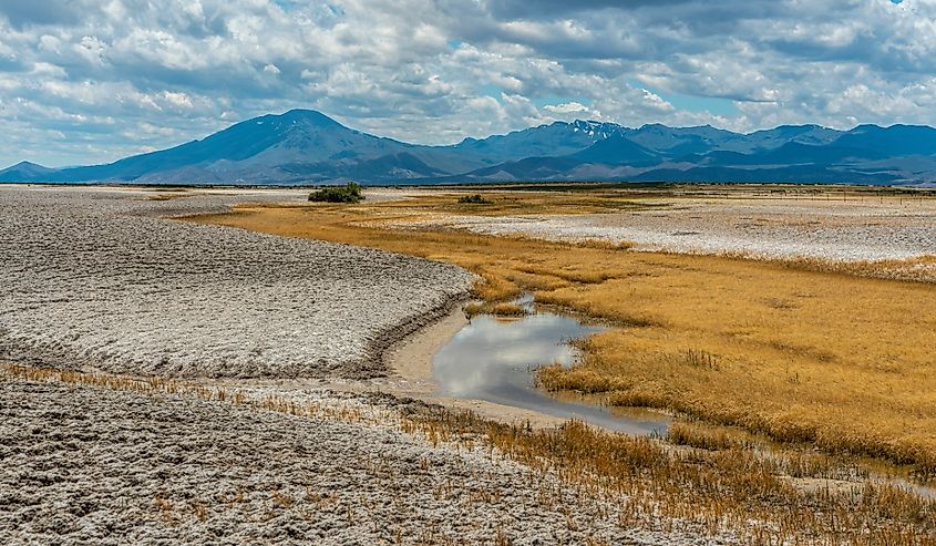 Água em salinas no deserto de Alvord, perto de Borax Lake and Fields, Oregon.