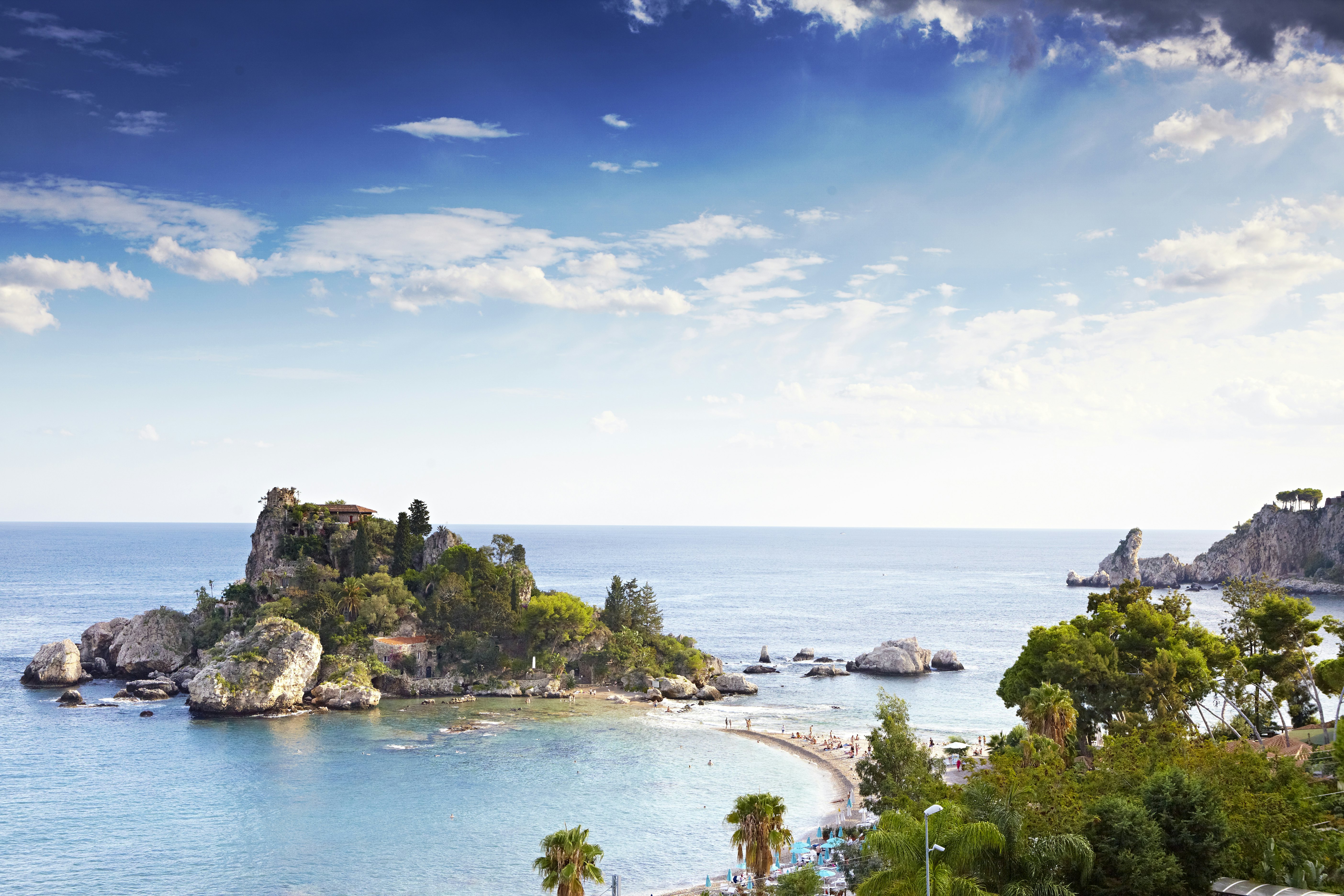 Rainha do glamour vintageTaorminaé o trampolim para mergulhos chiques no mar e incursões de mergulho com snorkel nas águas cristalinas que banham a praia de seixosLinda ilha- comobela(lindo) como o próprio nome sugere. O ponto de uma ilha, ligada por teleférico a Taormina (que fica dramaticamente situada num penhasco bem acima), atraiu a aristocracia europeia durante os tempos do Grand Tour e literatos como DH Lawrence na década de 1920. Vistas deslumbrantes do fumegante Monte Etna e do Mar Jônico disputam os holofotes durante as apresentações teatrais de verão em seu resplandecente anfiteatro grego antigo.