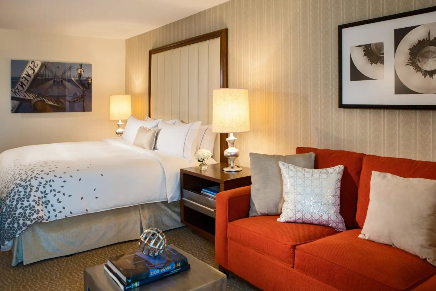 Si vous souhaitez vivre comme des rois pendant votre séjour, le Renaissance est en tête de liste des meilleurs hôtels près de l'aéroport de Newark. Avec des chambres aménagées à la mode, de délicieux restaurants sur place et des équipements de première classe, ils ont tout ce dont vous avez besoin pour un séjour mémorable. Le luxe vous suivra jusqu'à votre chambre où vous apprécierez les accents de design contemporain, la literie moelleuse et l'élégante salle de bains en marbre. Certaines chambres offrent une vue imprenable sur les toits de New York et d'autres disposent d'un accès au salon club, qui comprendra des hors-d'œuvre, des desserts et des boissons non alcoolisées gratuites. Si vous souhaitez explorer la région, vous avez choisi le meilleur hôtel d'aéroport où séjourner car vous serez dans un emplacement privilégié à proximité du service de ferry vers la Statue de la Liberté et Ellis Island. Avec le « Programme Navigateur » signature de Renaissance, vous pouvez explorer la beauté de Jersey et de ses environs comme un local, car le Navigateur s'assurera que vous savez où se trouvent tous les joyaux locaux et comment découvrir au mieux la région. Lorsque vous êtes prêt pour un repas à couper le souffle, rendez-vous au restaurant emblématique de Renaissance, Ironbound, pour déguster une délicieuse cuisine d'inspiration italienne et portugaise. Si, après avoir expérimenté le meilleur du luxe, vous décidez de quitter Newark, ils disposent également d'une navette aéroport gratuite pour votre commodité.
