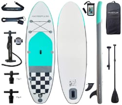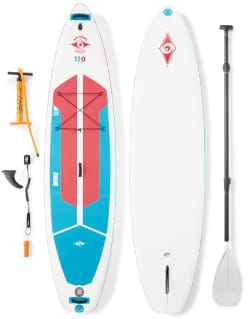 L’une des meilleures planches de stand up paddle gonflables est constituée d’une construction en PVC de qualité militaire et est appréciée pour sa stabilité. La planche de stand up paddle gonflable SereneLife mesure 10' de long et vous offre 2' 6" de largeur de pont et 6" d'épaisseur, ce qui améliore l'équilibre et la stabilité. La planche de 19,6 livres possède trois ailerons de panneau inférieur pour favoriser la vitesse et la maniabilité. Les pagayeurs débutants et intermédiaires apprécient cette planche en raison de son pont supérieur souple antidérapant. La planche comprend également une pagaie pliable, une laisse de sécurité enroulée à la cheville, une pompe à air manuelle, un kit de réparation et un sac de rangement. La planche de stand up paddle gonflable SereneLife a une capacité maximale de 275 livres et constitue une excellente option pour tout, de l'exploration à la randonnée.