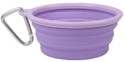 Le bol de voyage pliable en silicone pour nourriture et eau Prima Pets peut être utilisé lors de tous les types de voyages, du camping aux séjours à l'hôtel. Ce bol allant au lave-vaisselle mesure 5,5" x 2,2" et pèse 3,52 onces. Le bol non absorbant est fabriqué en silicone de qualité alimentaire et possède un bord en plastique sans BPA. Il a une base robuste de 3,6" qui empêche le bol de basculer et de faire des dégâts. Il peut contenir jusqu'à 1,5 tasse de nourriture ou d'eau et s'effondre jusqu'à 0,5" lorsqu'il n'est pas utilisé. Le mousqueton vous permet de l'accrocher à une laisse ou à un passant de ceinture. Choisissez parmi l'aqua, le violet, le rose ou le gris lorsque vous achetez le bol de voyage pliable en silicone pour nourriture et eau Prima Pets pour votre chien.