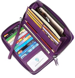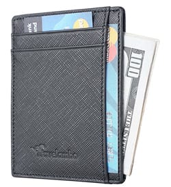 Si vous recherchez le meilleur portefeuille pour les voyages internationaux, n'oubliez pas de consulter le portefeuille mince minimaliste avec poche avant RFID Travelambo. C'est le portefeuille minimaliste parfait car il est léger (pesant seulement 0,3 once), mince (avec une épaisseur de seulement 0,1 pouce) et dispose de 10 emplacements pour cartes. Ce portefeuille de voyage 100% cuir dispose également de deux emplacements pour l'argent, les coupons, les billets, les reçus, etc. ainsi qu'une fenêtre pour votre carte d'identité. Le design minimaliste se glisse facilement dans la poche avant de votre pantalon de voyage. Ainsi, peu importe où vous vous trouvez dans le monde, vous n'aurez pas à vous soucier de vérifier constamment votre poche arrière pour vous assurer que les pickpockets ne vous ont pas atteint. Bien qu'il soit reconnu comme un excellent portefeuille de voyage pour hommes, il existe plus de 30 modèles parmi lesquels choisir afin qu'il puisse également convenir aux femmes.