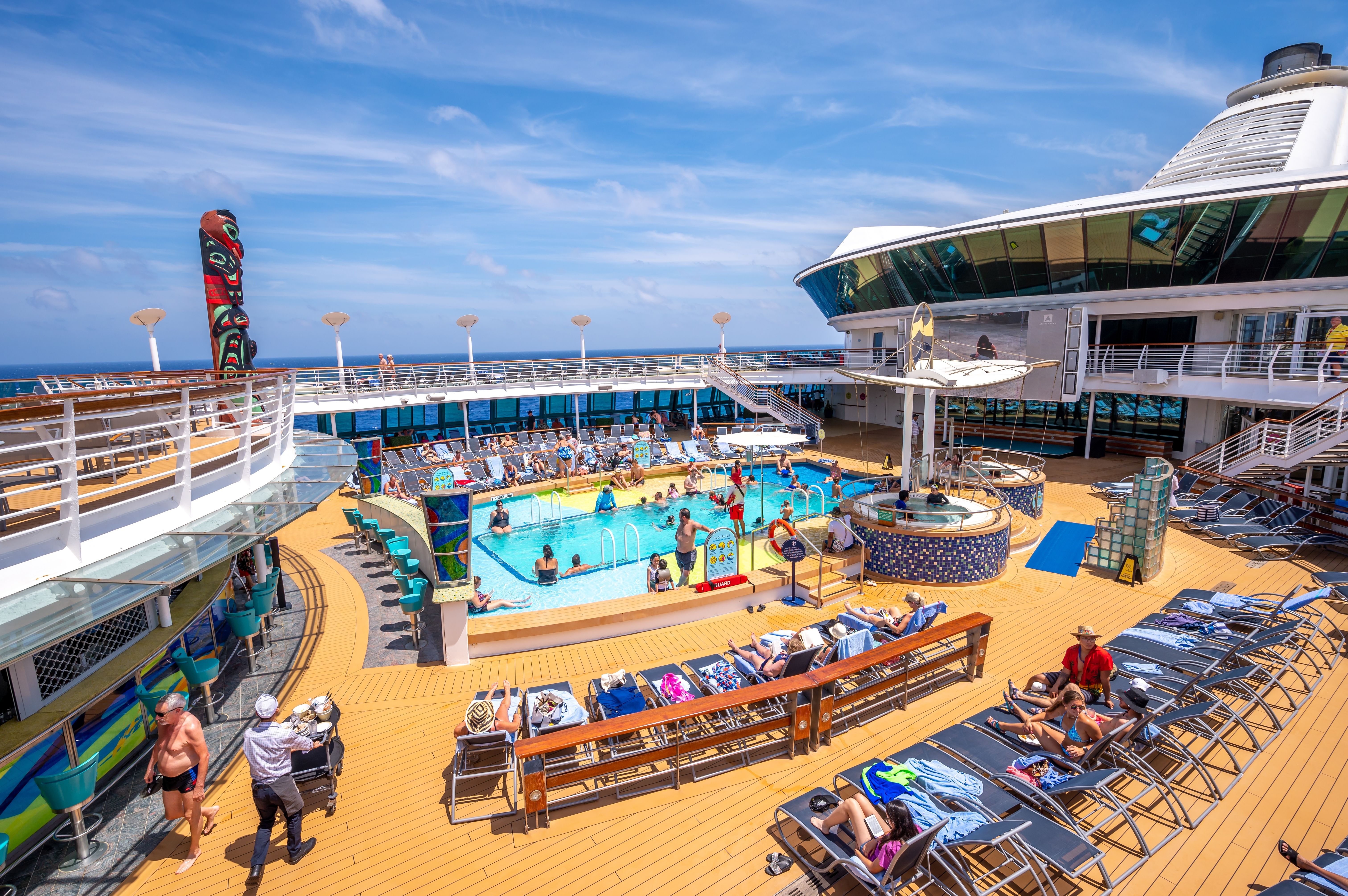 Vue de la terrasse de la piscine sur le bateau de croisière Radiance of the Seas, près du Mexique.