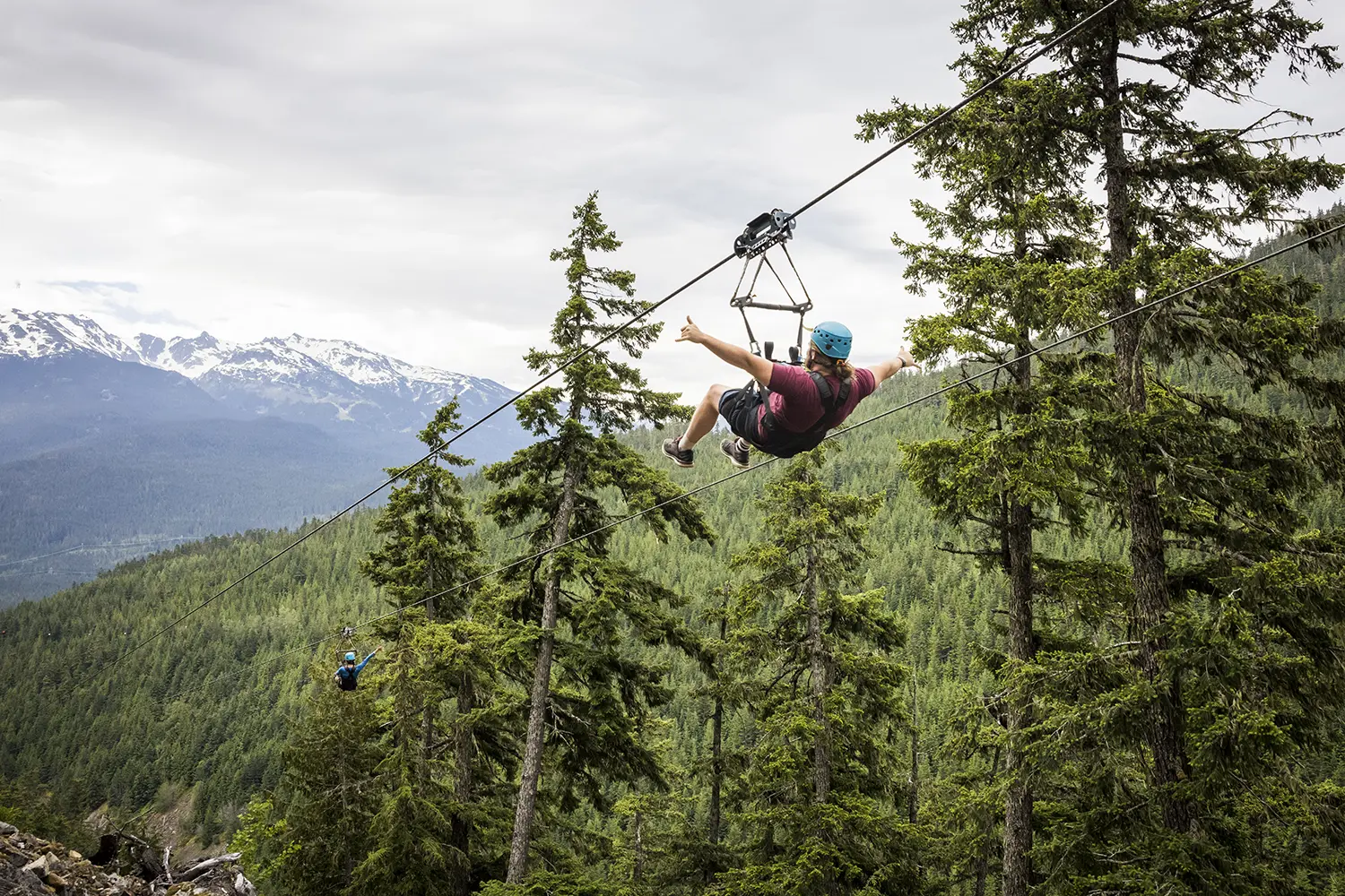 Le parcours comprend quatre ponts au sommet des arbres et cinq fantastiques manèges en tyrolienne volante, le plus long s'étendant sur 2 400 pieds et 30 étages de haut ! Il s'agit d'une excellente activité pour les familles ou les groupes et comprend une balade jusqu'au début du parcours via la télécabine de Whistler Village.